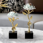 Each petal is expertly shaped from high-quality metal, capturing the intricate details and graceful curves found in nature. The thoughtful design incorporates a subtle combination of textures and finishes, allowing light to play on the surface, enhancing the sculpture’s visual appeal. The result is a striking piece that exudes a sense of organic beauty while maintaining the durability and longevity of metal craftsmanship.