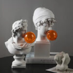Turn your room into a stylish habitat. This minimalist decor is a modern take on the bust statue of David Apollo. Its orange balloon adds a layer of depth and luxury to the sculpture – A mix of post modern attitude with classical virtue. A modern interprtation of Michaelangelo’s sculpture of David. Give your room or office a living ensemble with a feel of roman elegance.