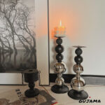 Introducing the Black and Silver Candle Holder, a sleek and contemporary addition to your home decor. This striking candle holder combines the timeless elegance of black with the modern allure of silver, creating a captivating centerpiece that enhances the ambiance of any space.