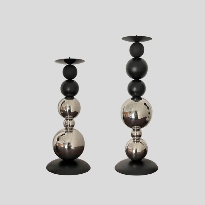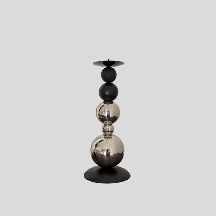 Introducing the Black and Silver Candle Holder, a sleek and contemporary addition to your home decor. This striking candle holder combines the timeless elegance of black with the modern allure of silver, creating a captivating centerpiece that enhances the ambiance of any space.