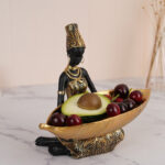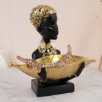 Our Ethnic Storage Tray is a beautifully crafted work of art that depicts the beauty and spirit of the African continent. The sculpture is made from high-quality materials, such as metal, stone, or resin, and features intricate details and a highly realistic or abstract design. The African girl depicted in the sculpture is captured in a natural and expressive pose, and is dressed in traditional or modern attire. The sculpture is a perfect way to add a touch of cultural beauty and diversity to your home or office, and can be placed on a tabletop, shelf, mantel, or other surface. It is also a great conversation starter and can be used to celebrate and honor the culture and history of Africa. This African girl sculpture would make a thoughtful and meaningful gift for any occasion.