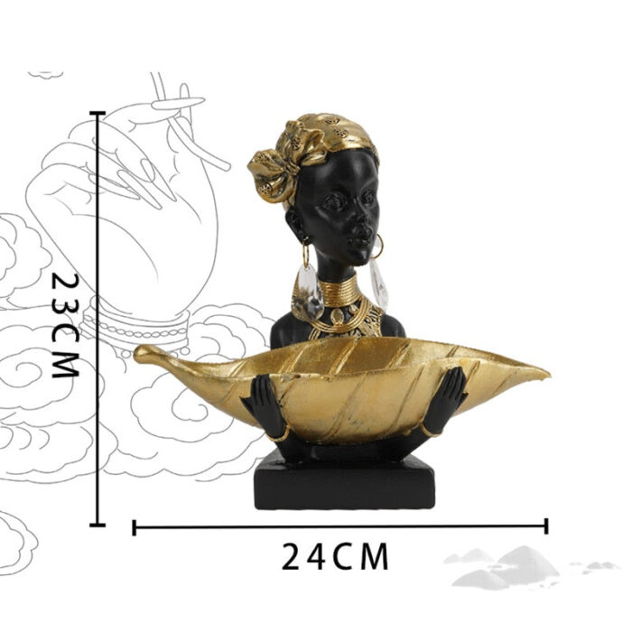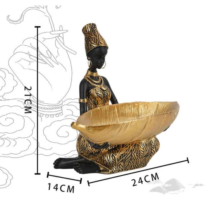Our Ethnic Storage Tray is a beautifully crafted work of art that depicts the beauty and spirit of the African continent. The sculpture is made from high-quality materials, such as metal, stone, or resin, and features intricate details and a highly realistic or abstract design. The African girl depicted in the sculpture is captured in a natural and expressive pose, and is dressed in traditional or modern attire. The sculpture is a perfect way to add a touch of cultural beauty and diversity to your home or office, and can be placed on a tabletop, shelf, mantel, or other surface. It is also a great conversation starter and can be used to celebrate and honor the culture and history of Africa. This African girl sculpture would make a thoughtful and meaningful gift for any occasion.