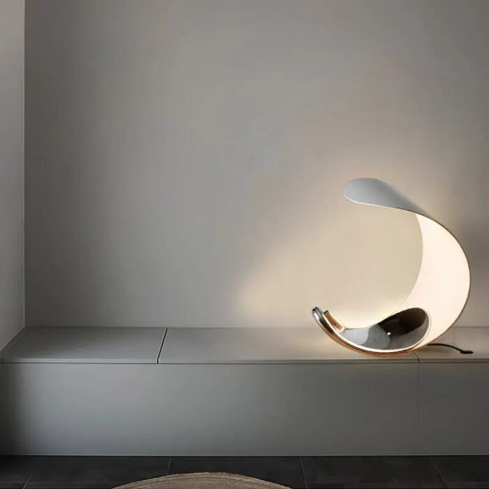 Brighten up your work space with this Half Moon lamp designed in Italy. A sleek and and revolutionary design paired with its neutrally bold color, gives it an unobtrusive yet stylish look thatās perfect for your home office, console, or bedside.Ā