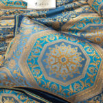 Transform your bedroom with vibrant colors and thrilling patterns of Kelina duvet set. Pure satin and Egyptian cotton fabric is ultra-soft in touch, that brings a sense of warmth while you sleep. Royal style inspired embroidery enlivens your space, and colored in rich red and silver grey hues for a splendid finish, the set is an absolute must-have for those who seek quality and luxury.