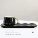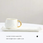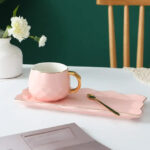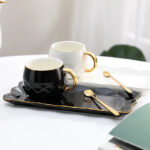 Ideal for everyday use or to WOW your guests, these elegant mug sets in solid colosrs with gold handle are stylish, elegant and durable. Made from durable ceramic and bone china, each mug has a simple yet modern shape. Each set consists of a mug, tray and a gold spoon.
