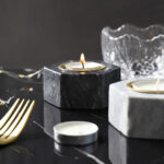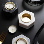 Minimalist natural marble and metal candle holders to illuminate any area of your house or office.