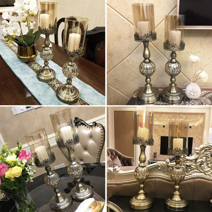 These beautiful brass glass candleholders for use with tea-lights or scented candle is a perfect example of form and functionality. The elegant and classy shape will illuminate any area of your house or office and will quickly become talking point among your guests. Suitable for indoors or out, the lamp looks beautiful alone or in a set.