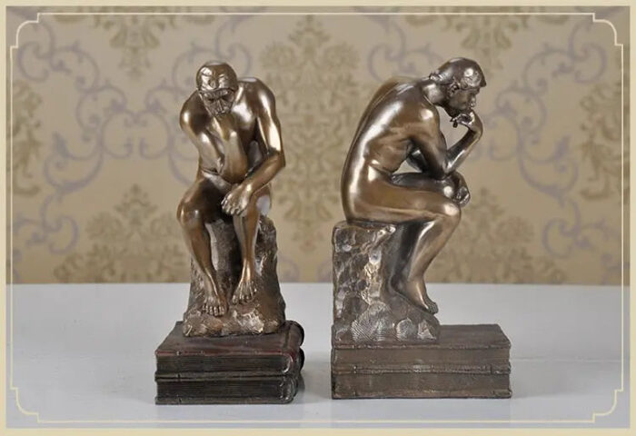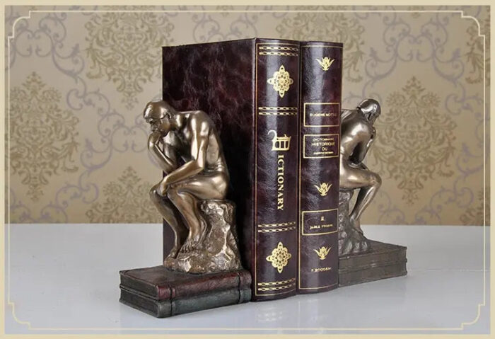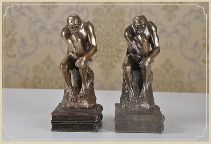 Thinkin man bookend made with high quality poly resin and hand painted. This bookend is completely handmade, precision polished, hand drawn, and each piece is strictly inspected for product quality