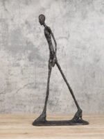 Walker sculpture with non slip base has smooth finish, fluid shapes and details that make a dynamic sense of motion.