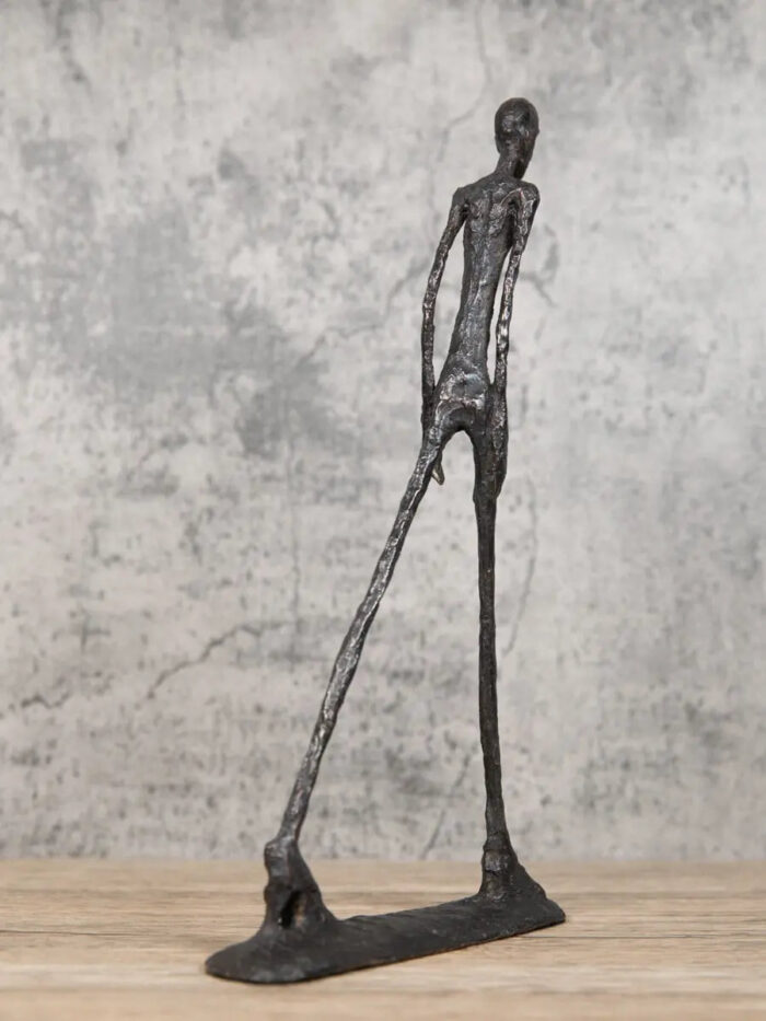 Walker sculpture with non slip base has smooth finish, fluid shapes and details that make a dynamic sense of motion.
